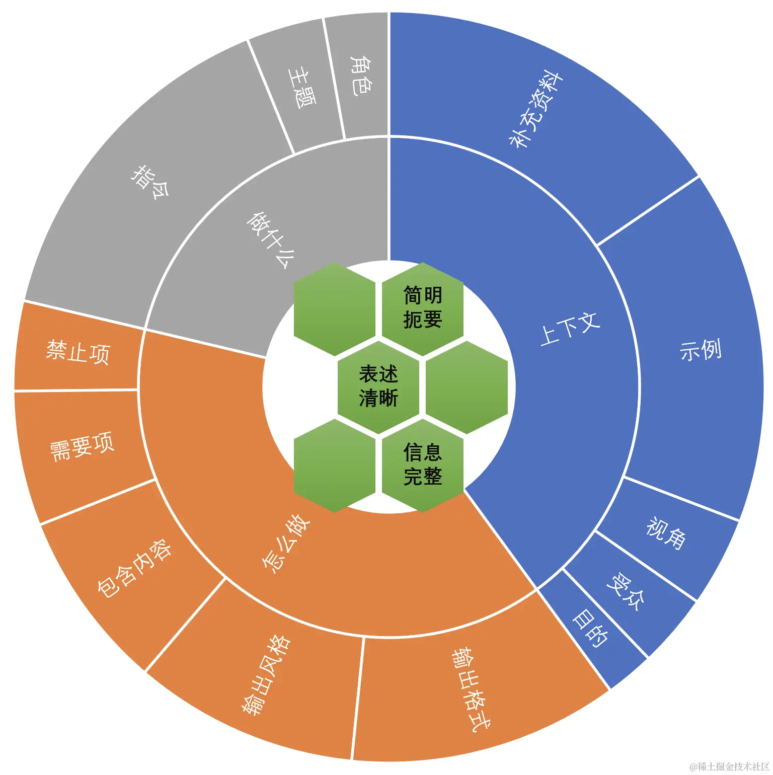 基于Prompt的工作机制,我们看到,最重要的是Prompt需要”被理解“。”被理解“意味着一个Prompt需要包含足够、无歧义的信息。这通常包括三个关键组成部分:做什么、怎么做、上下文。