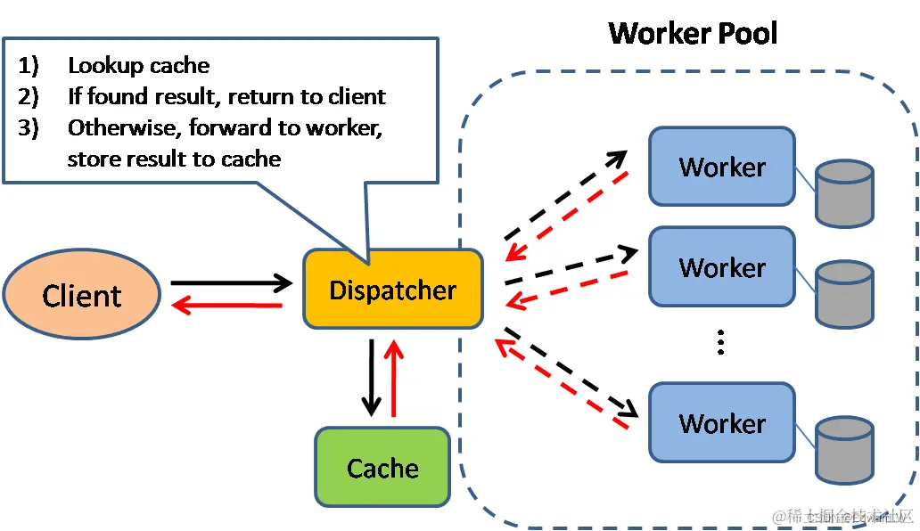 缓存可以提高页面加载速度,并可以减少服务器和数据库的负载。在这个模型中,分发器先查看请求之前是否被响应过,如果有则将之前的结果直接返回,来省掉真正的处理。