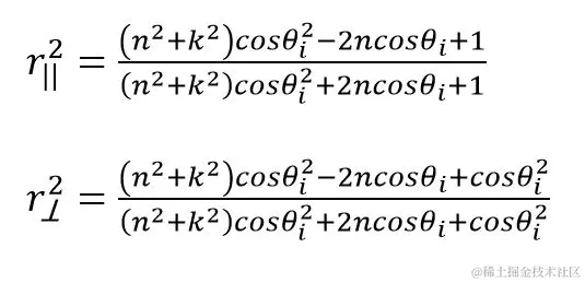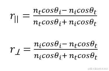 菲涅耳反射率建模为**Fr= 0.5(r||2+ r⟂2) **.