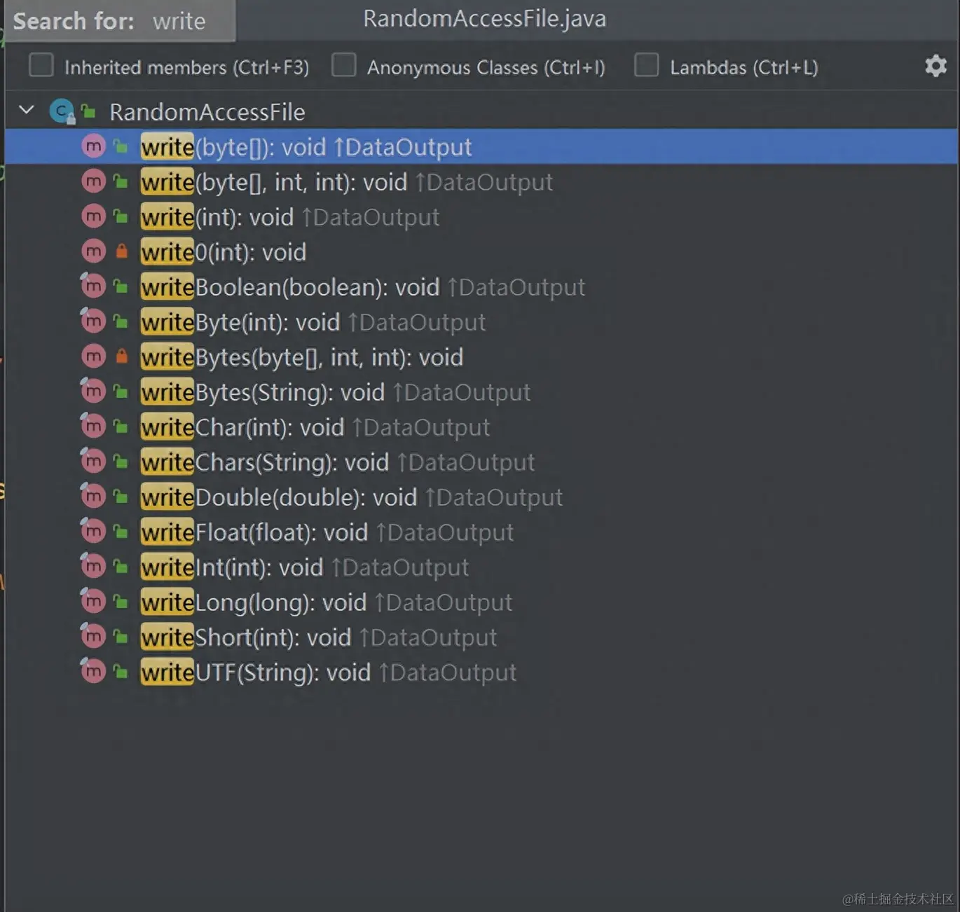 它是一个直接继承Object的独立的类,底层实现中它实现的是DataInput和DataOutput接口。该类支持随机读取文件,随机访问文件类似于文件系统中存储的大字节数组。