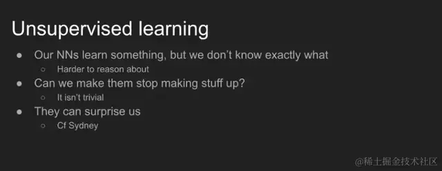 因此,与简单的监督学习中的语音识别、计算机视觉等任务不同,无监督学习面临着新的困难,这些困难可能以一种出乎意料的方式给我们感到惊讶。