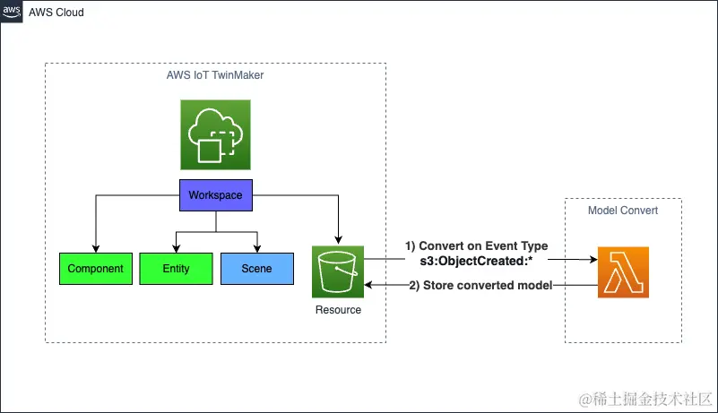 – 将 OBJ 文件转换为 glTF – 将 glTF 转换为 Draco glTF– 将 Draco glTF 模型上传回 S3 存储桶。