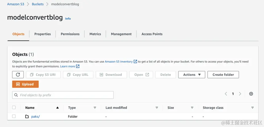 9.在此存储桶中创建一个文件夹并将其命名为 paks