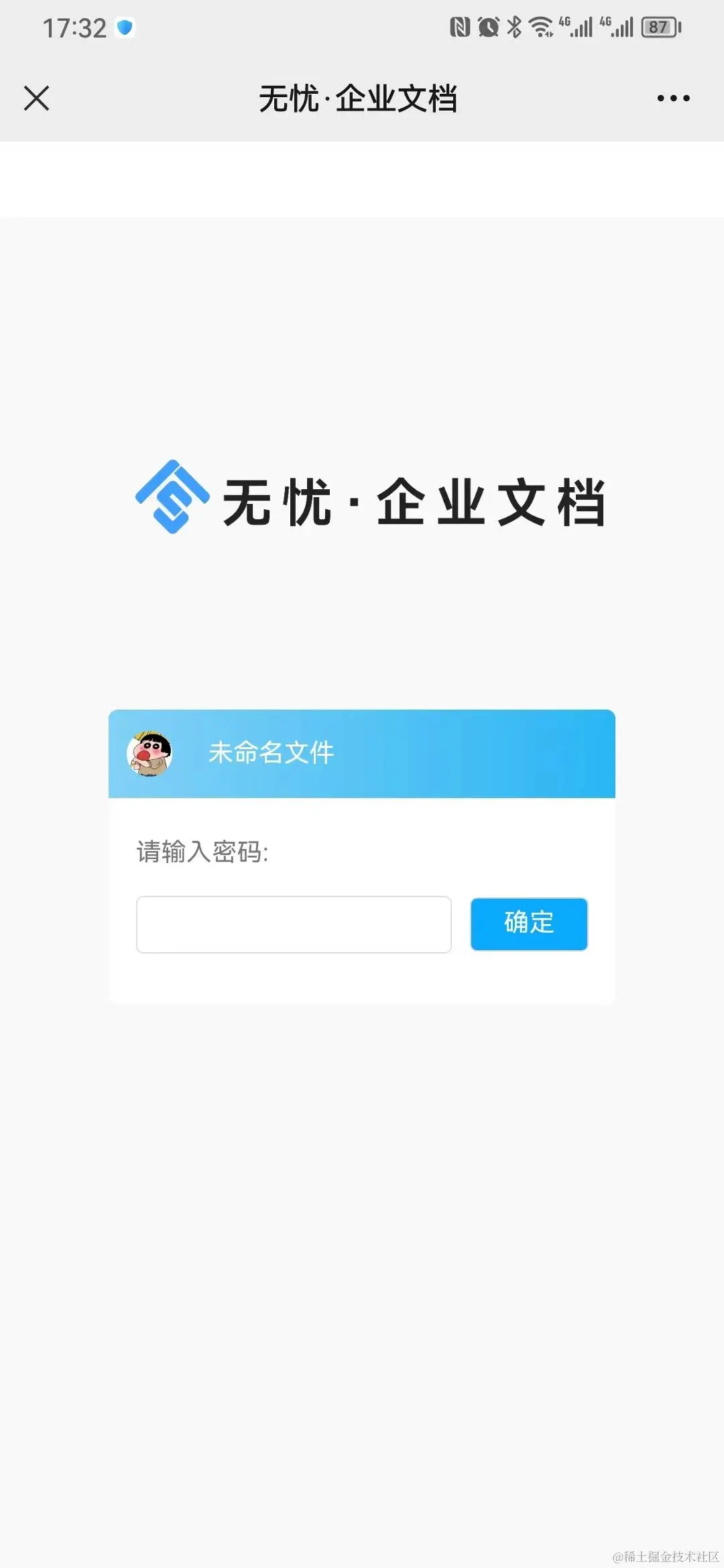 移动端,对于有密码设置的分享文件阅读,需要输入密码