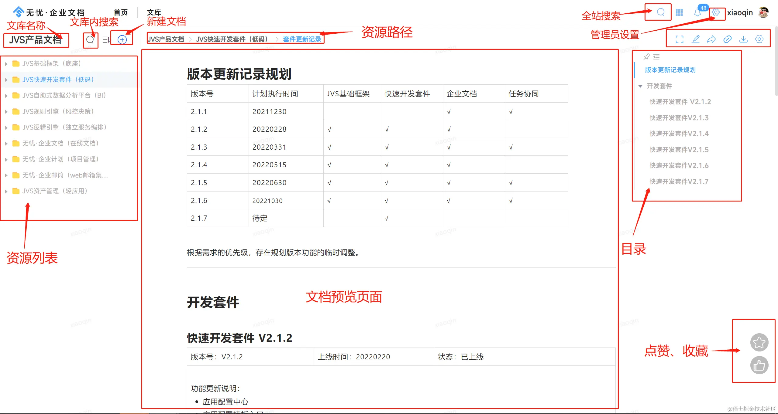 无忧企业文档是软开企服研发的一款集知识库、网盘、在线协同为一体的企业级办公软件,有完全免费的开源版,也有功能丰富的商业版。开源版在社区开放了全量源码,商业版支持提供源码,支持二次开发,适合中小企业使用。