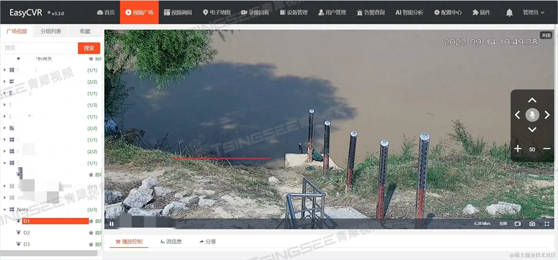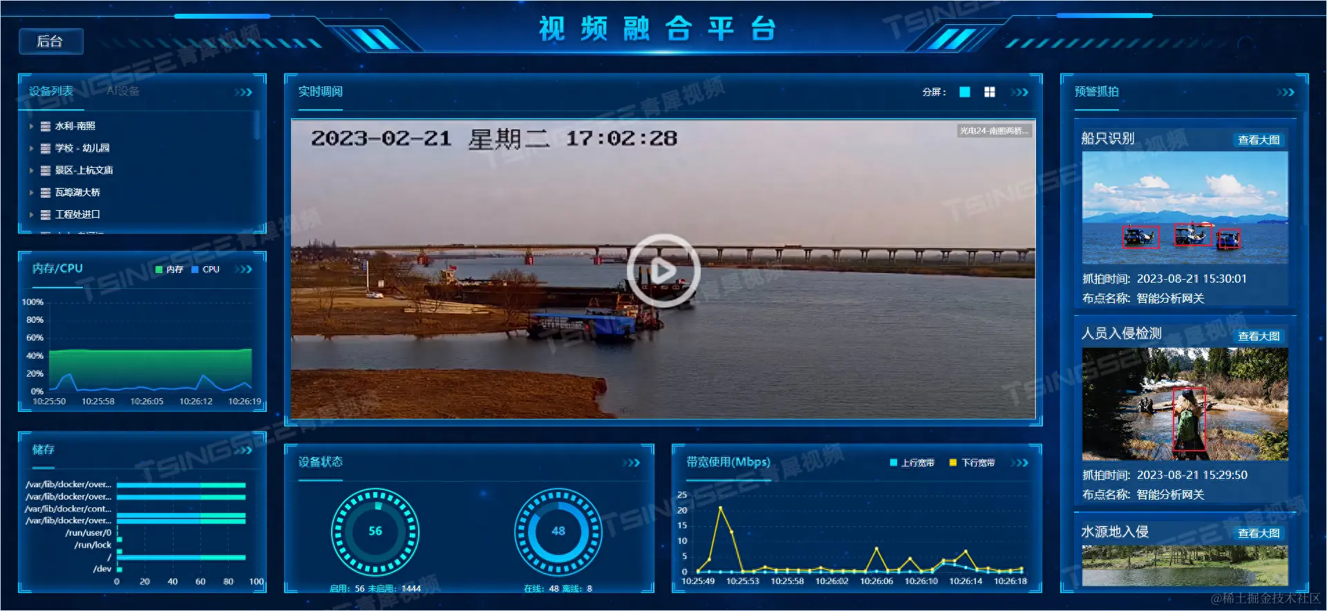 同时,在水域划定警戒区域,当检测到有人员闯入时,也能触发告警,有效防范夏季有人员进入危险水域游泳。结合视频监控系统EasyCVR平台的视频能力,能对水库、河道等水域进行全天候监控,密切监视雨情、水情、汛情,消除风险隐患,筑牢防汛第一线。