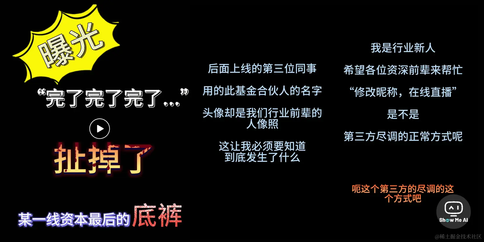 被发现后,投资人先是沉默,然后说「完了完了完了」,并试图把这件事说成是「想要一些行业判断,你可以理解成一种第三方尽调…」。