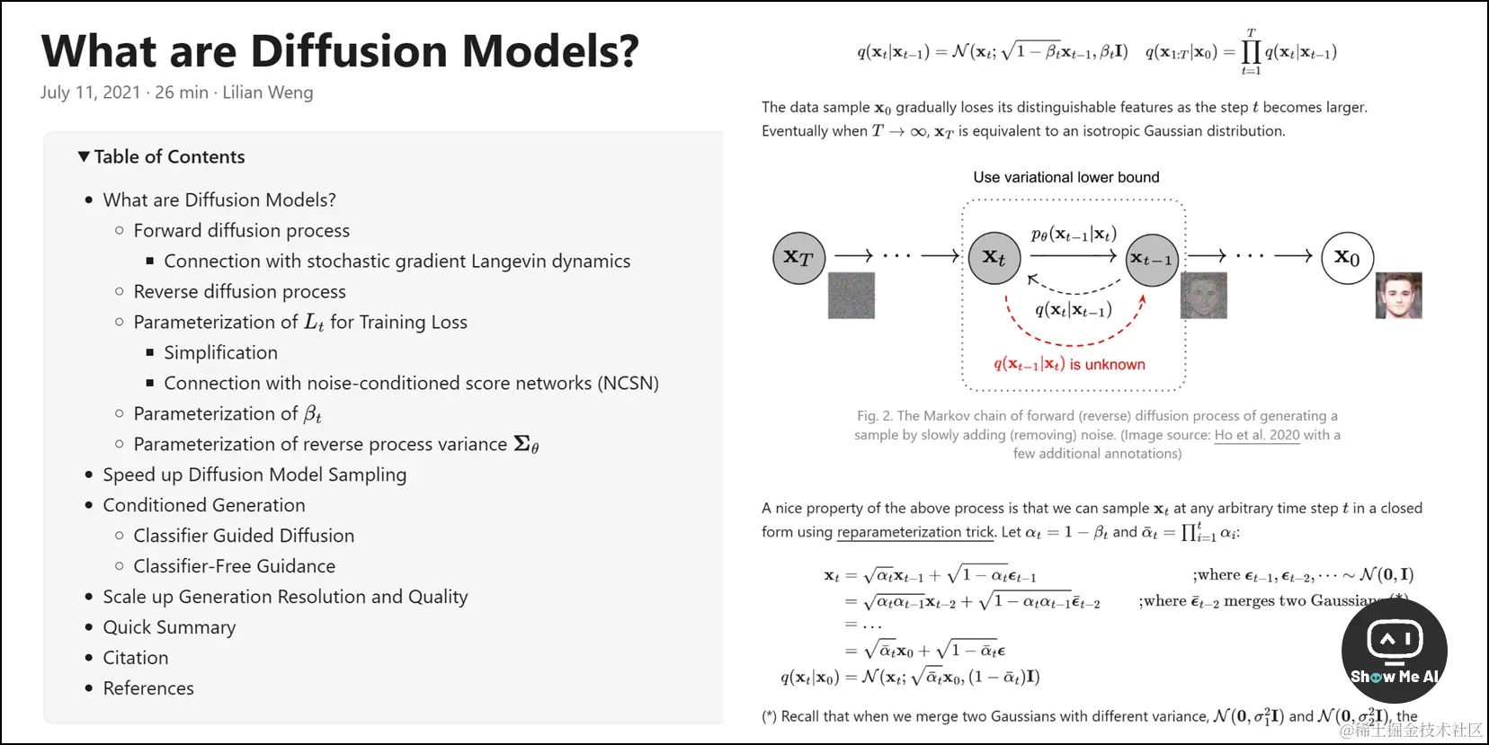 这篇文章发布于2021年7月,全面介绍了 Diffusion 模型的原理和变体,有着细致透彻的数学推导过程。