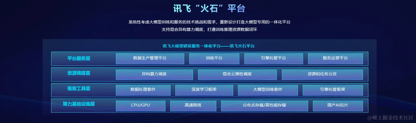 他提到,大模型给包括平台系统、训练推理框架、数据处理工具、算力基础设施在内的AI工程技术带来了新的挑战。面对挑战,在算力方面,讯飞和华为强强联合,打造全国产化的算力底座;结合行业需求,讯飞也打造了大模型专用的一体化平台——火石平台,有效支撑了行业大模型的落地。