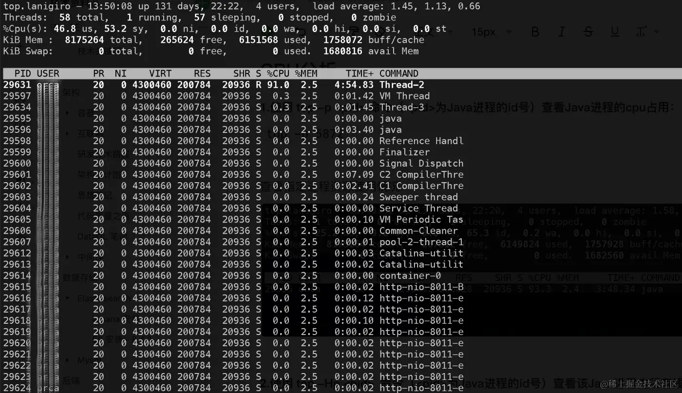 遇到 java 进程 CPU 占用较高级别就是这个分析思路: