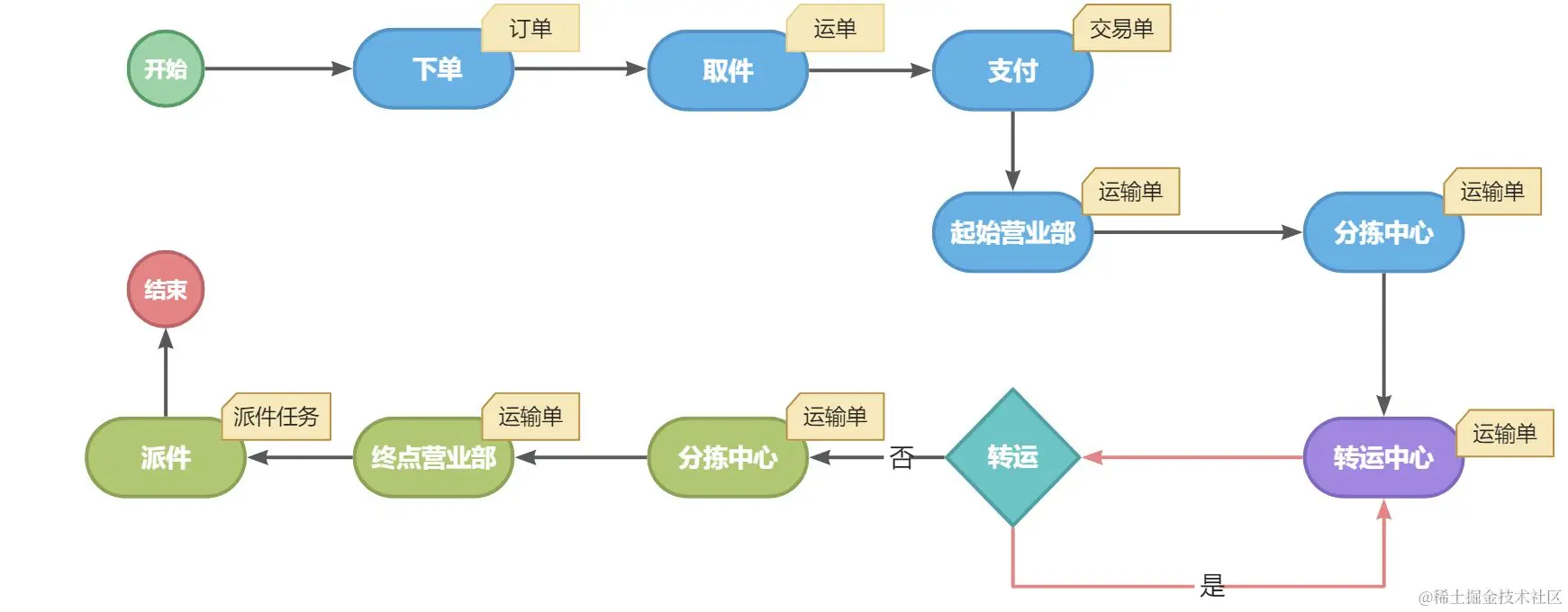 快件开始运输,会经历起始营业部、分拣中心、转运中心、分拣中心、终点营业部之间的转运运输,在此期间会有多个**【运输任务】**