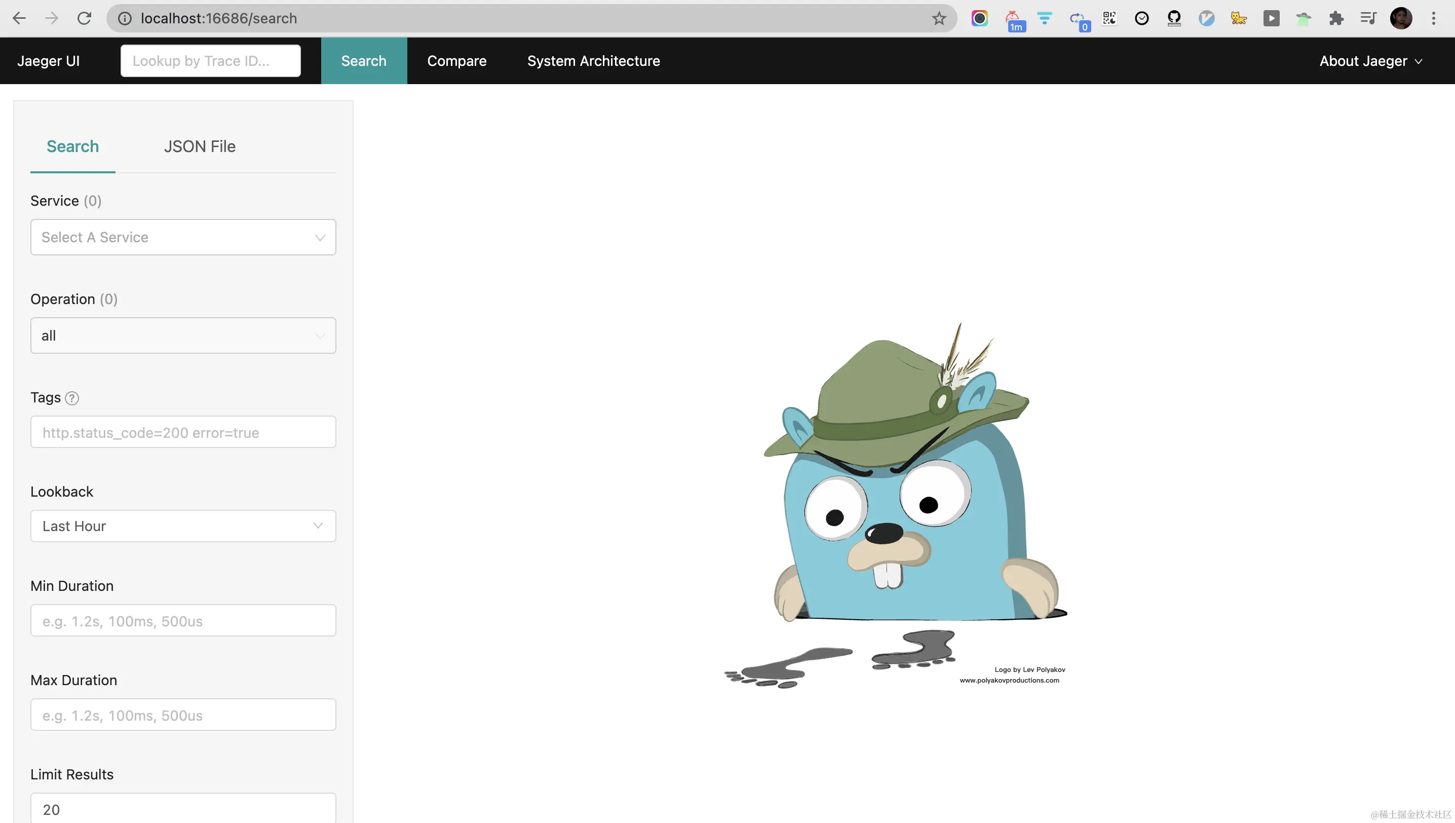 访问Jaeger控制台(localhost:16686),可发现有一条新的记录:
