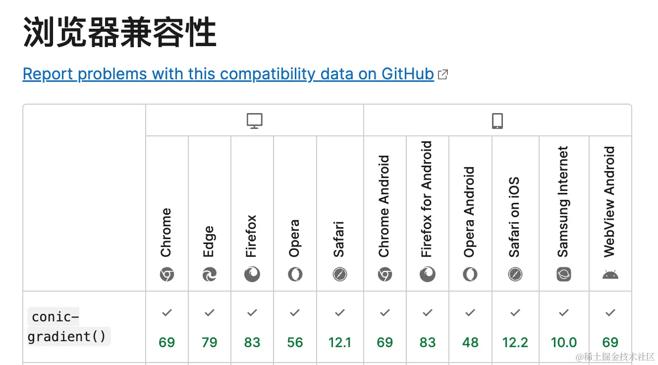 好了,大功告成,是不是很简单!并且这个conic-gradient()浏览器兼容性也不错。