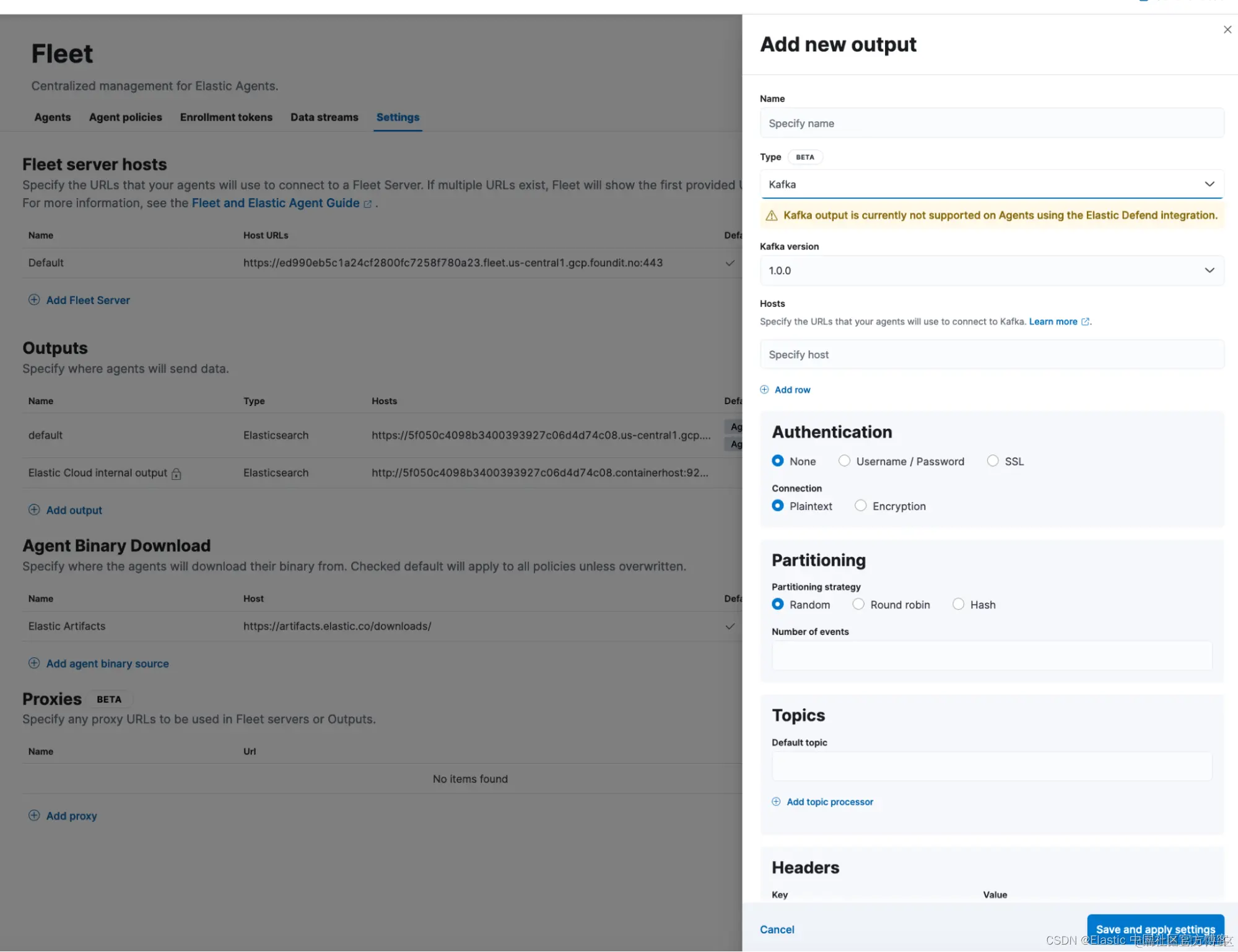 Elastic Agent 用户现在可以将数据流式传输到 Kafka 进行进一步处理(测试版中提供)。 Kafka 用于构建实时流数据管道。 用户现在可以使用 Elastic Agents 将应用程序数据流式传输到 Kafka 代理,并利用其弹性和存储功能。