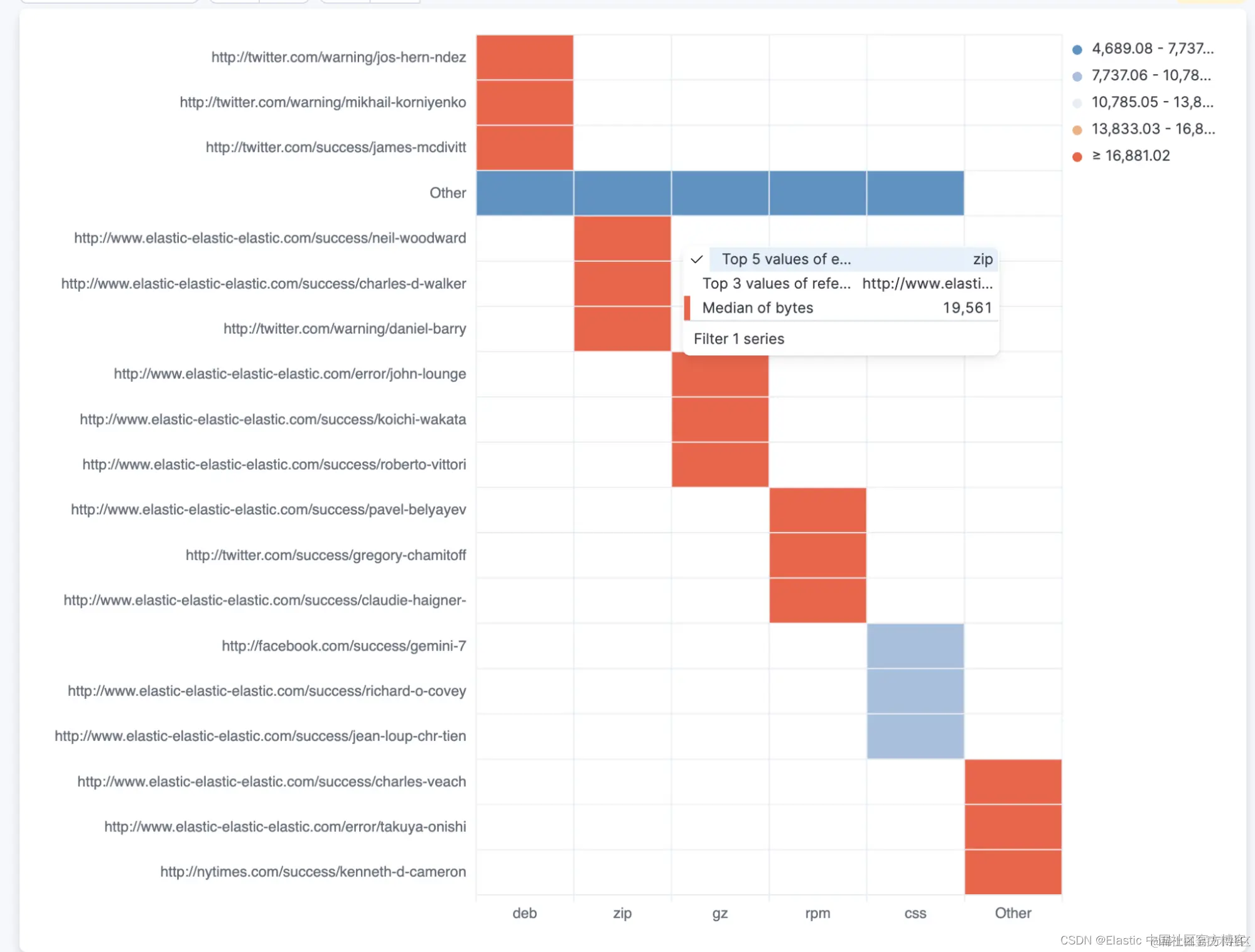 使用工具提示操作的多值过滤已针对 XY 图表启用,我们现在也针对热图和分区图启用它。 你现在可以同时按多个值过滤这些值,从而更轻松地在数据中找到所需的见解。