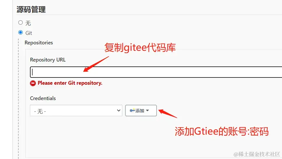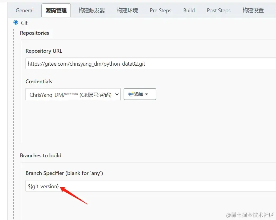 在Jenkins页面里添加 获取Gitee代码库的标签信息