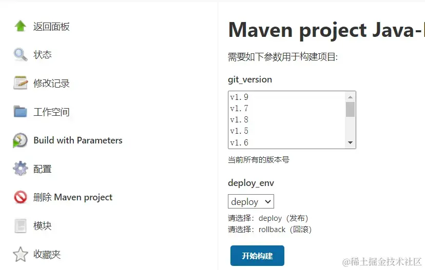 然后再创建 选项参数:实现发布和回滚的功能