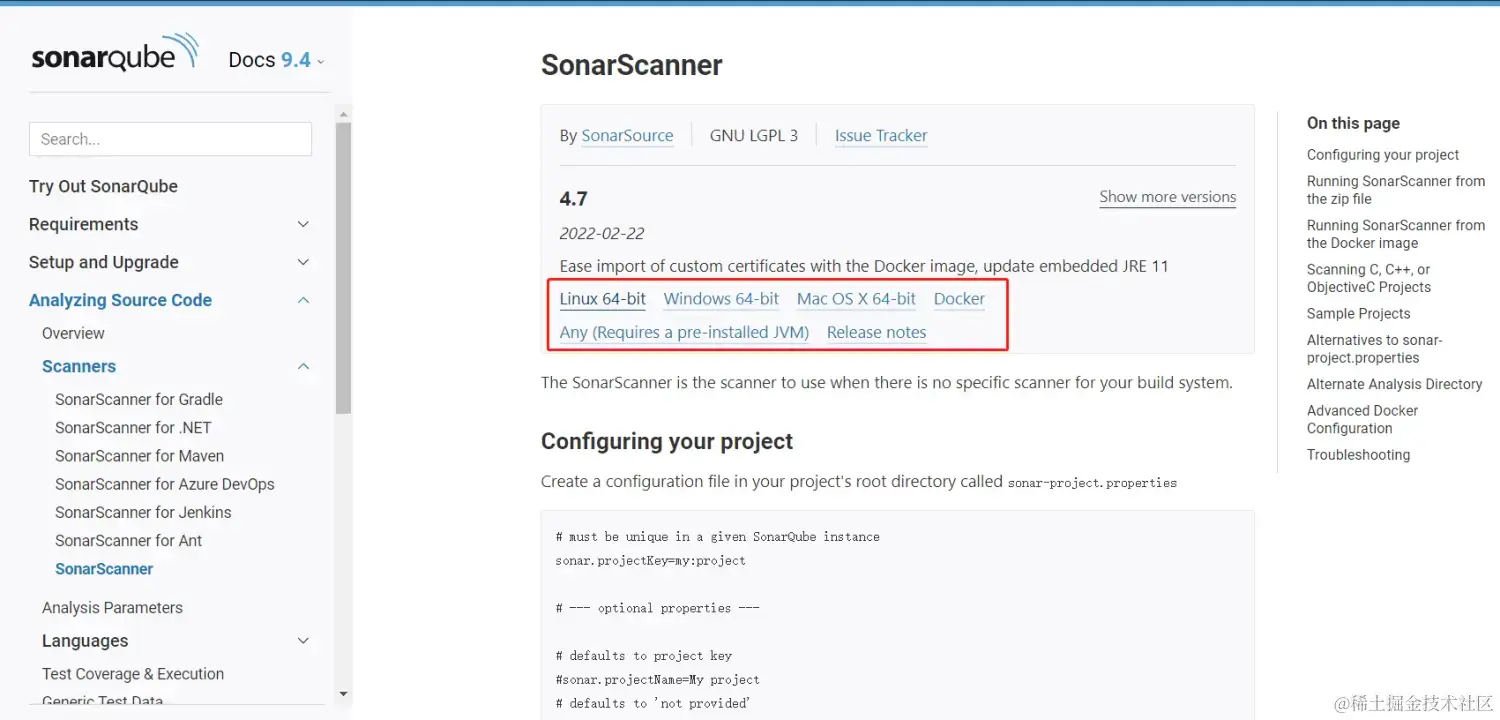 客户端其他版本下载地址搜索对应版本,例如: SonarScanner 4.07