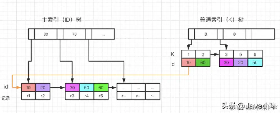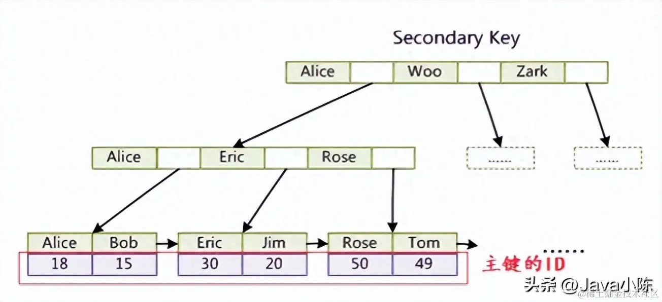 非聚簇索引是一种普通的 B+ 树索引,它将数据记录和索引分开存储,也就是说,叶子节点只存储键值和指向数据记录地址的指针。在 Mysql 中,每张表可以有多个非聚簇索引,通常是普通键或者唯一键。