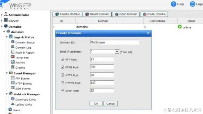 下载安装Wing FTP Server软件本地计算机,过程非常简单,安装部署过程这里不再多余言语。在初始配置FTP服务时,注意不同端口协议对应不同的功能用途,根据自己使用场景选择配置使用即可。