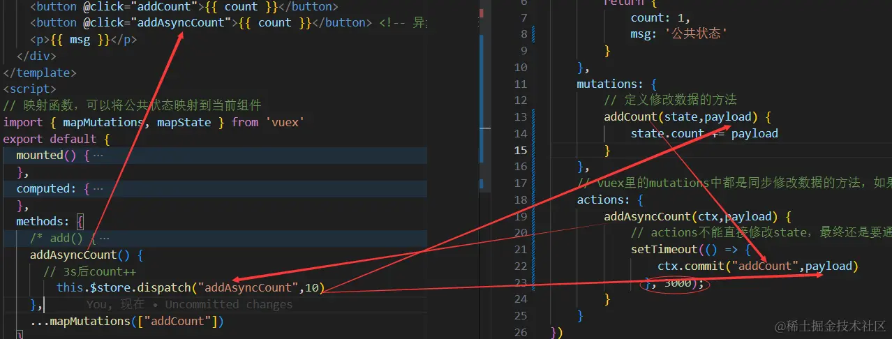 - 你不能直接改变 store 中的状态。改变 store 中的状态的唯一途径就是显式地提交 (commit) mutation。这样使得我们可以方便地跟踪每一个状态的变化。