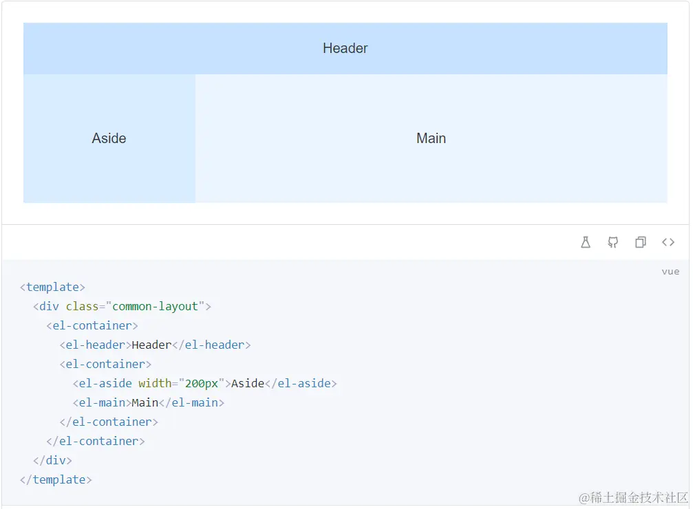 <el-aside width="200px">Aside</el-aside>