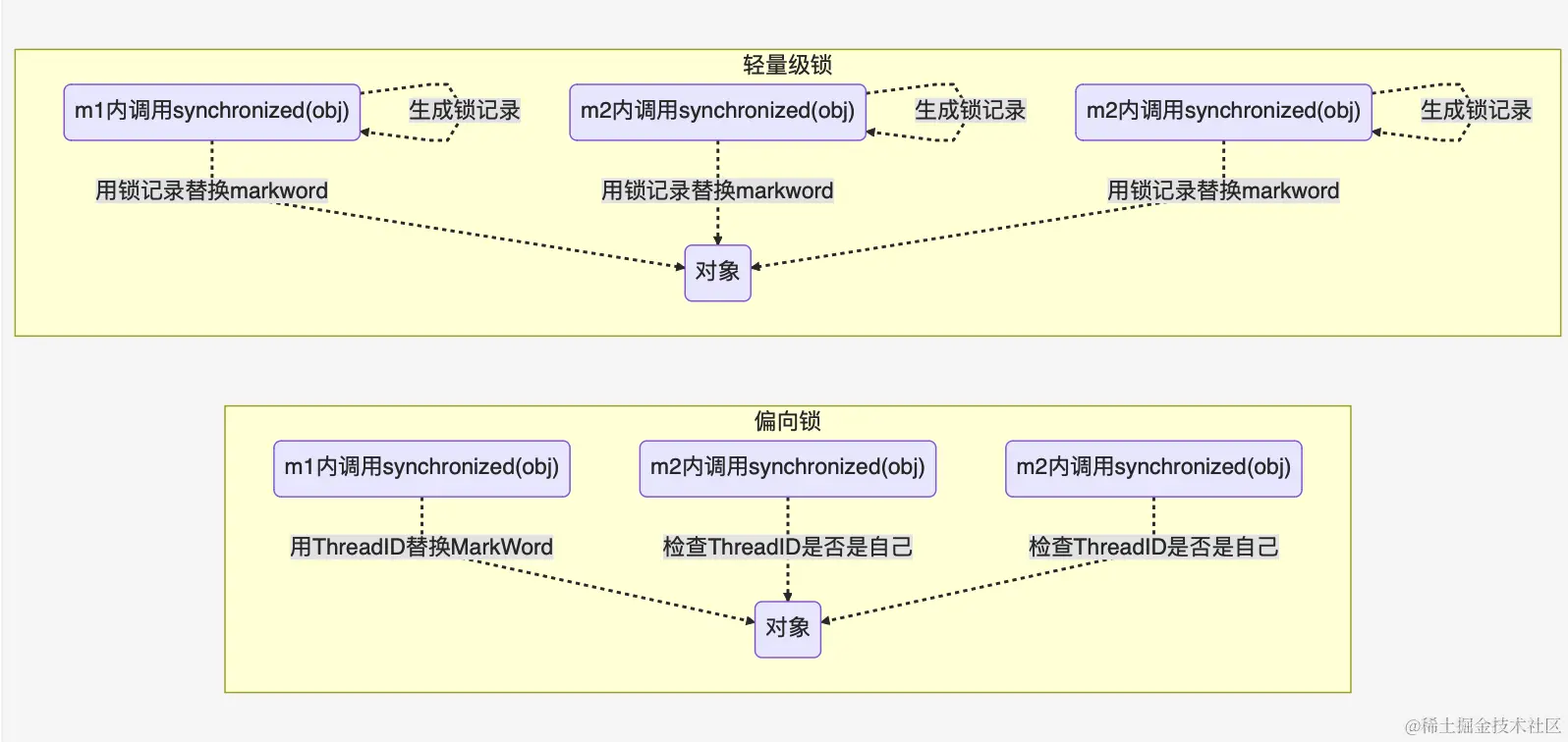 偏向锁和轻量级锁需要两个线程加锁是先后的,否则就是重量级锁