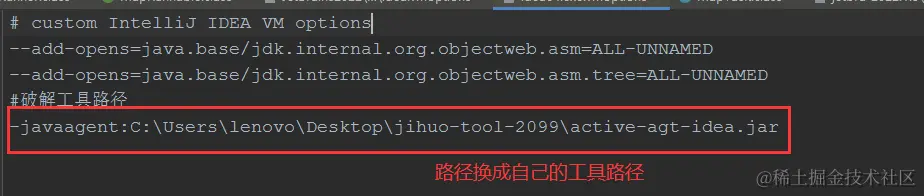 从教程中看核心的一步是增加了 IDEA JVM 启动时参数-javaagent:/Users/[user]/tools/jihuo-tool-2099/active-agt-idea.jar,可以确定采用的是 Java Agent 拦截技术。