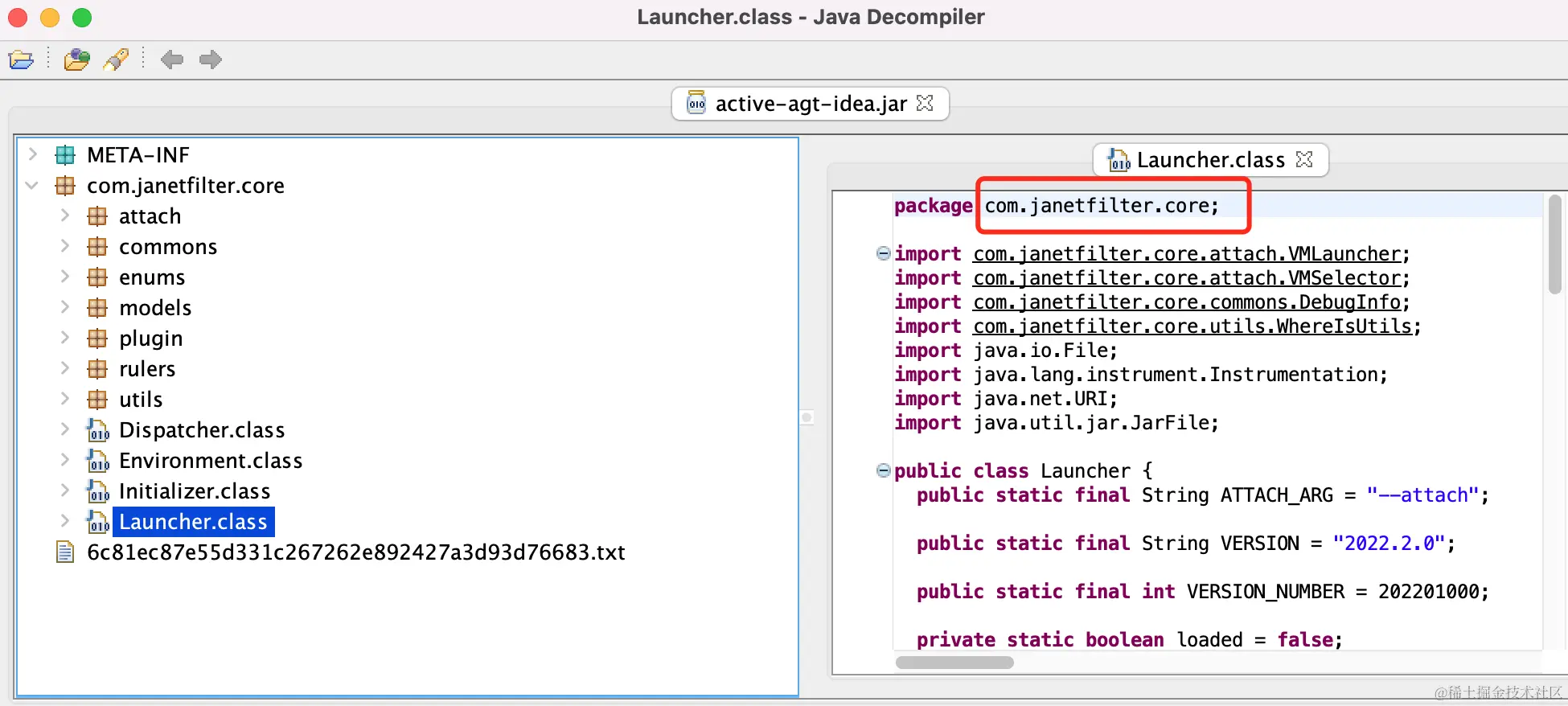 为了搞清楚 Java Agent 中做了什么,使用 JD-GUI 反编译 jihuo-tool-2099 目录下 jar 文件。