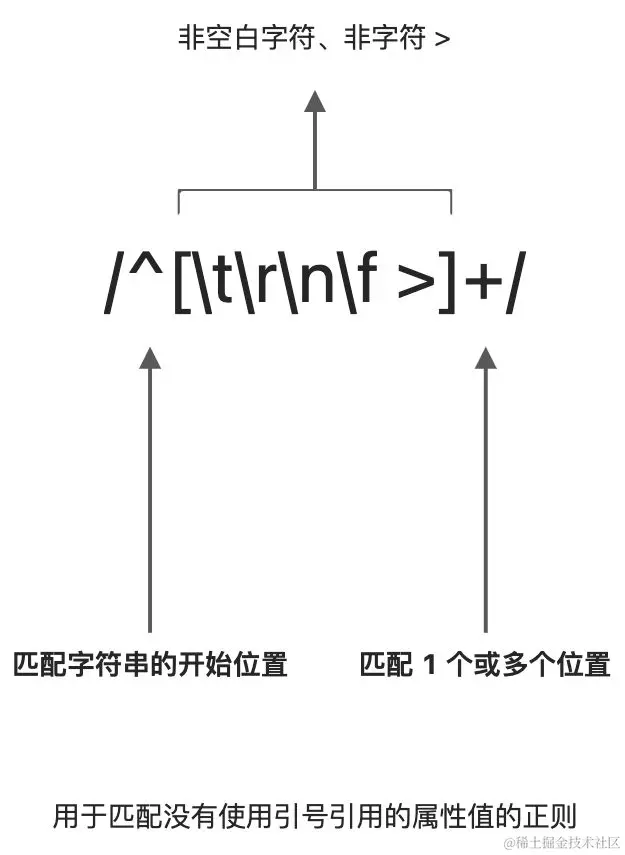 需要注意的是,在解析模板时,不能忽略空白字符的处理。这些空白字符包括:换行符 (\n)、回车符 (\r)、空格 (' ')、制表符 (\t) 以及换页符 (\f)。假设我们使用加号 (+) 代表换行符,用减号 (-) 代表空格字符,如上面的模板所示。