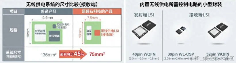 蓝碧石科技的无线供电芯片组内置供受电所需的控制电路,可实现系统的小型化,同时,无需用户开发微控制器程序,有助于缩短开发周期。此外,供受电频率采用与 NFC 标准相同的 13.56MHz 频段,这将有助于天线的小型化。