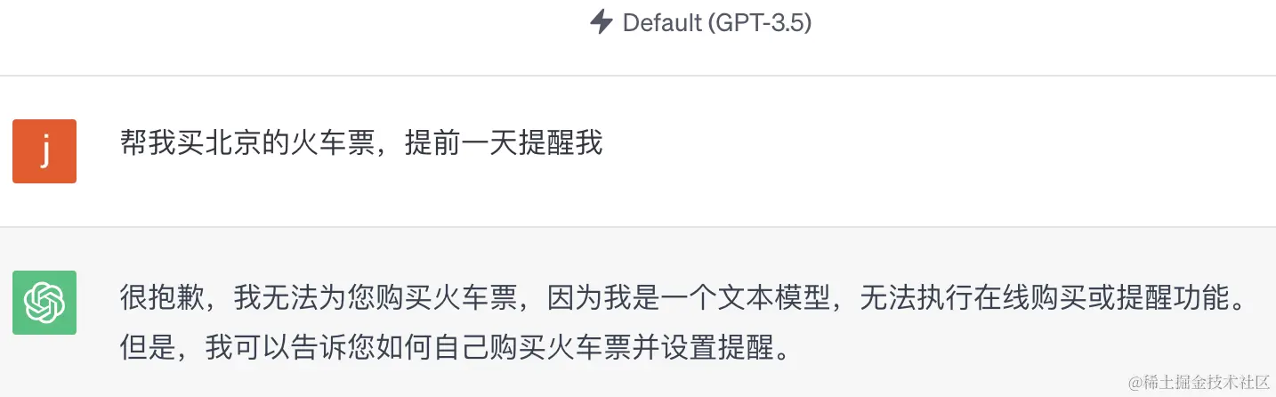 想象下,你创建一个人工智能助手,你可以这样对他说:“帮我买北京的火车票,提前一天提醒我”!如果是ChatGPT的话,它必然会无情地拒绝你。