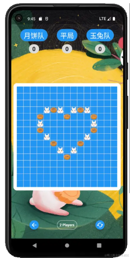 而通过gamePiece的坐标点,我们可以从棋盘的数据中判断当前坐标是什么类型,然后展示对应的图标(月饼和玉兔)。