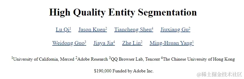前言 在本文中,High-Quality Entity Segmentation对分割问题进行了全新的探索。