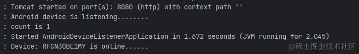 这里要注意一个细节,就是上面这个while中对于hasInitialDeviceList的判断,因为adb初始化需要一定的时间。如果在androidDebugBridge初始化完成后,就立马调用deviceList获取设备列表的方法,那有可能会返回empty list,因此需要进行等待,如果等待超出了设定的范围还是没有获取到列表信息,那就直接退出系统。