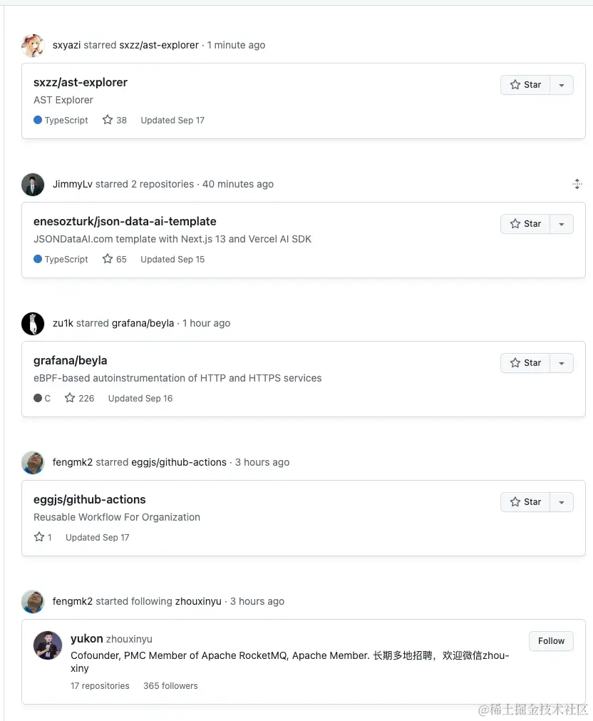 GitHub新版动态非常的难用,没什么有效信息,也不知道关注点的朋友最近都在 Star 啥