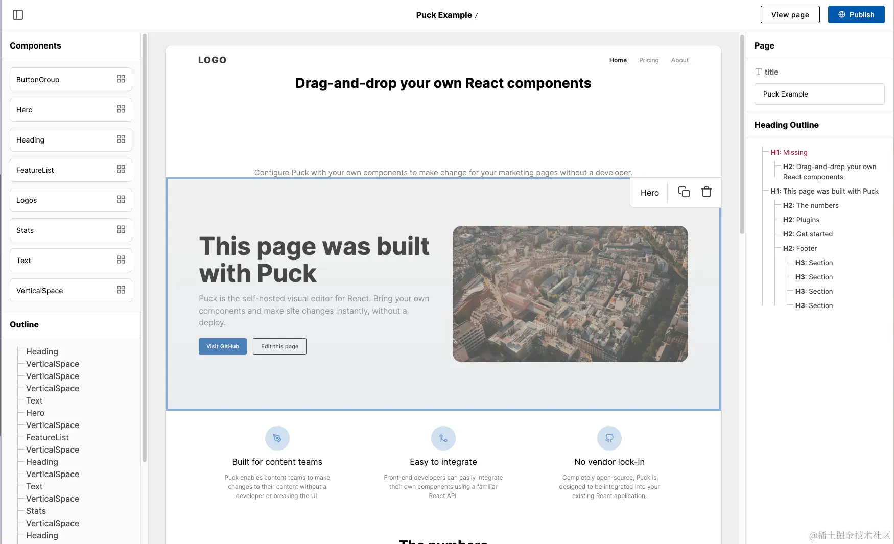 - puck 基于 React 的可视化编辑器。