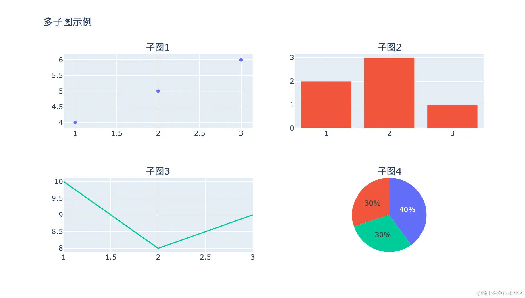 subplot_titles=("子图1", "子图2", "子图3", "子图4"), # 子图标题