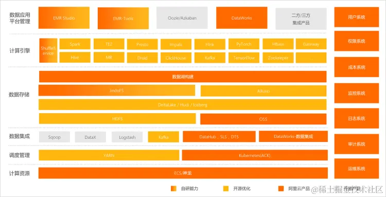 - aws 上面提到的几点,同样适配于阿里云的emr ,他们俩基础功能很相似。