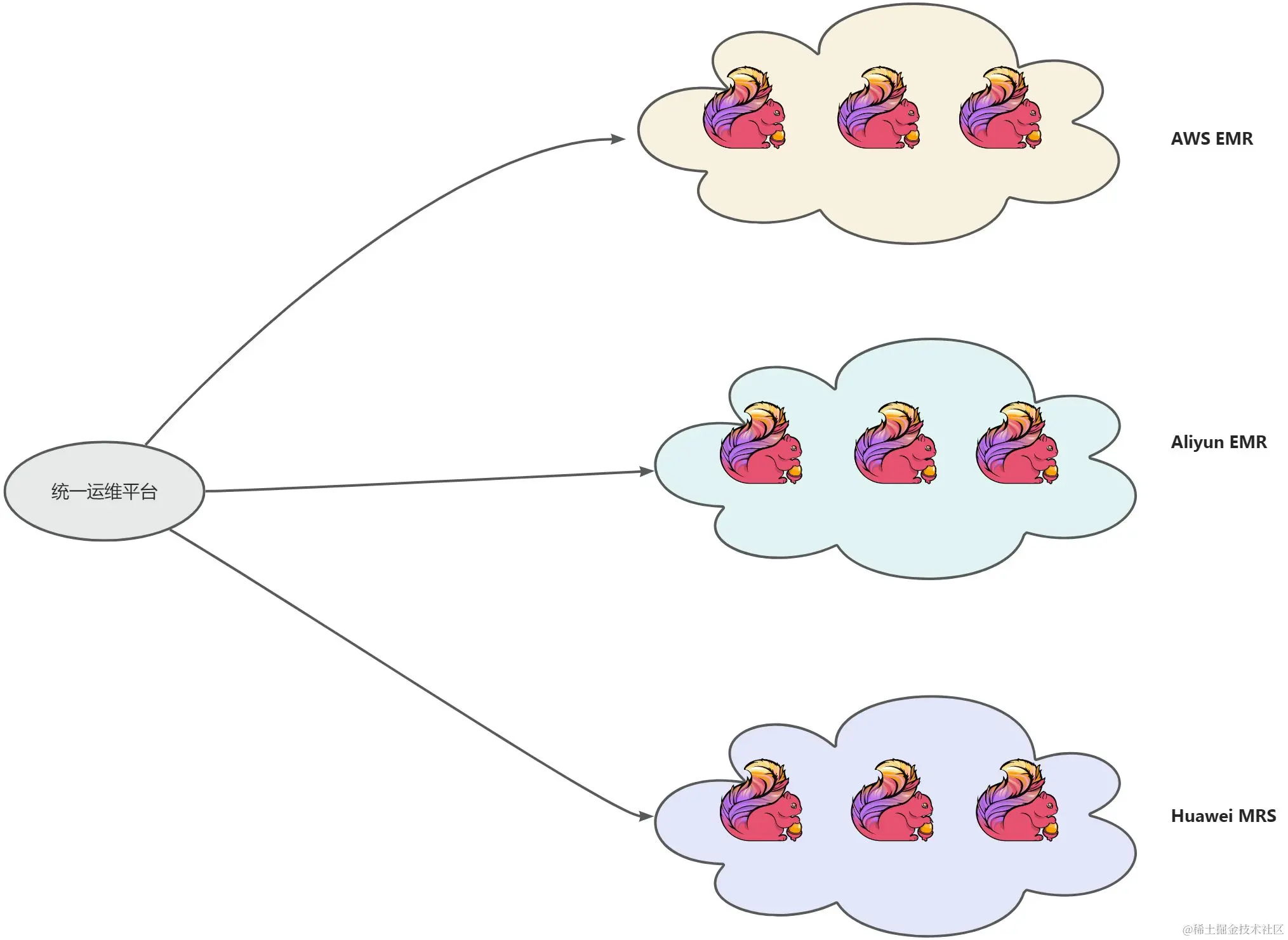 - 平台端的多云架构,因为元数据已经脱离集群,所以整体上基于Catalog 保持在外部存储介质(Mysql Postgres )这些也同样要有 多云环境的容灾考虑。