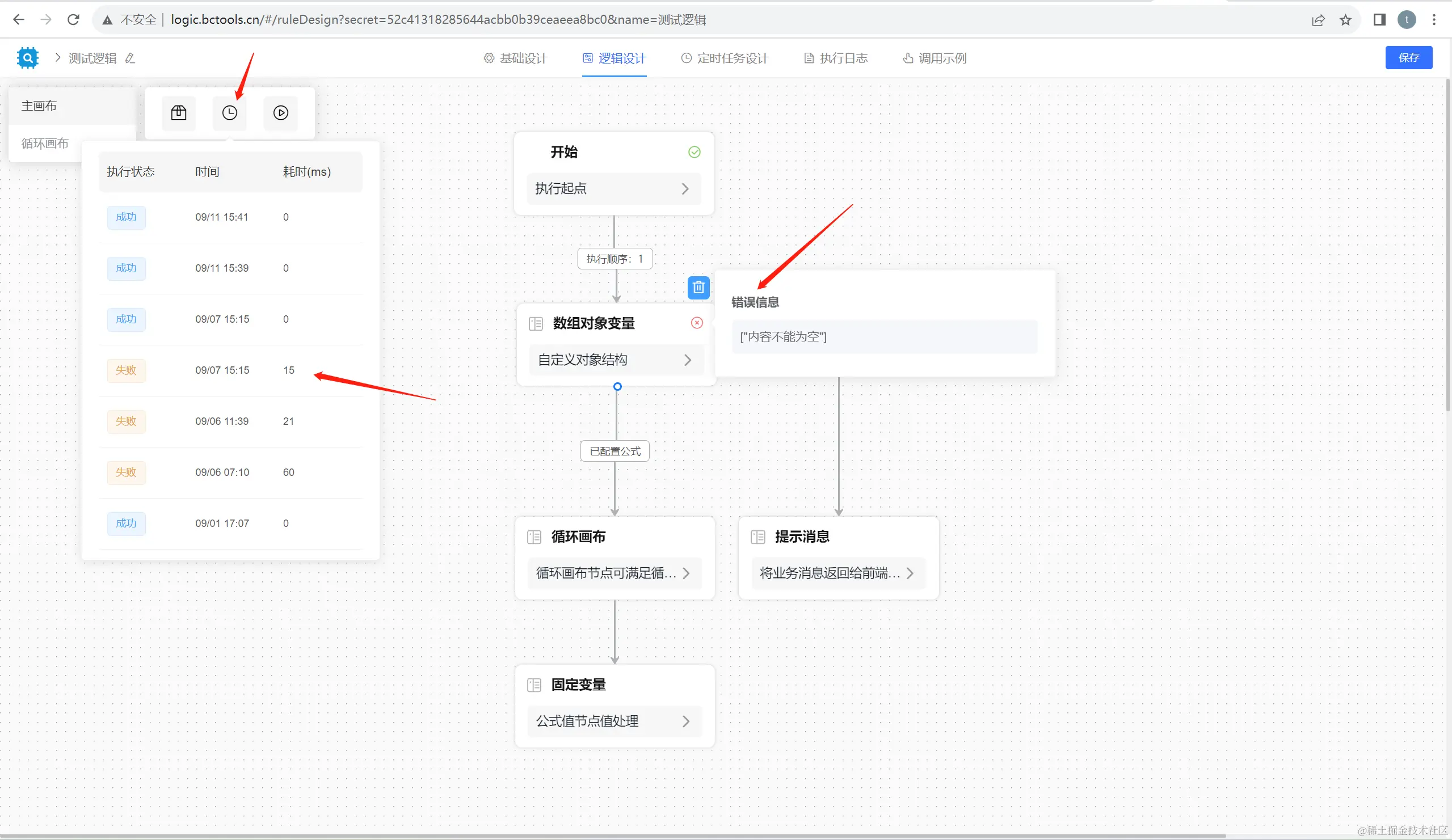 JVS-LOGIC提供界面化的配置调试功能, 可以快速便捷的在界面上查看执行的过程与结果,系统并提供执行的分析情况