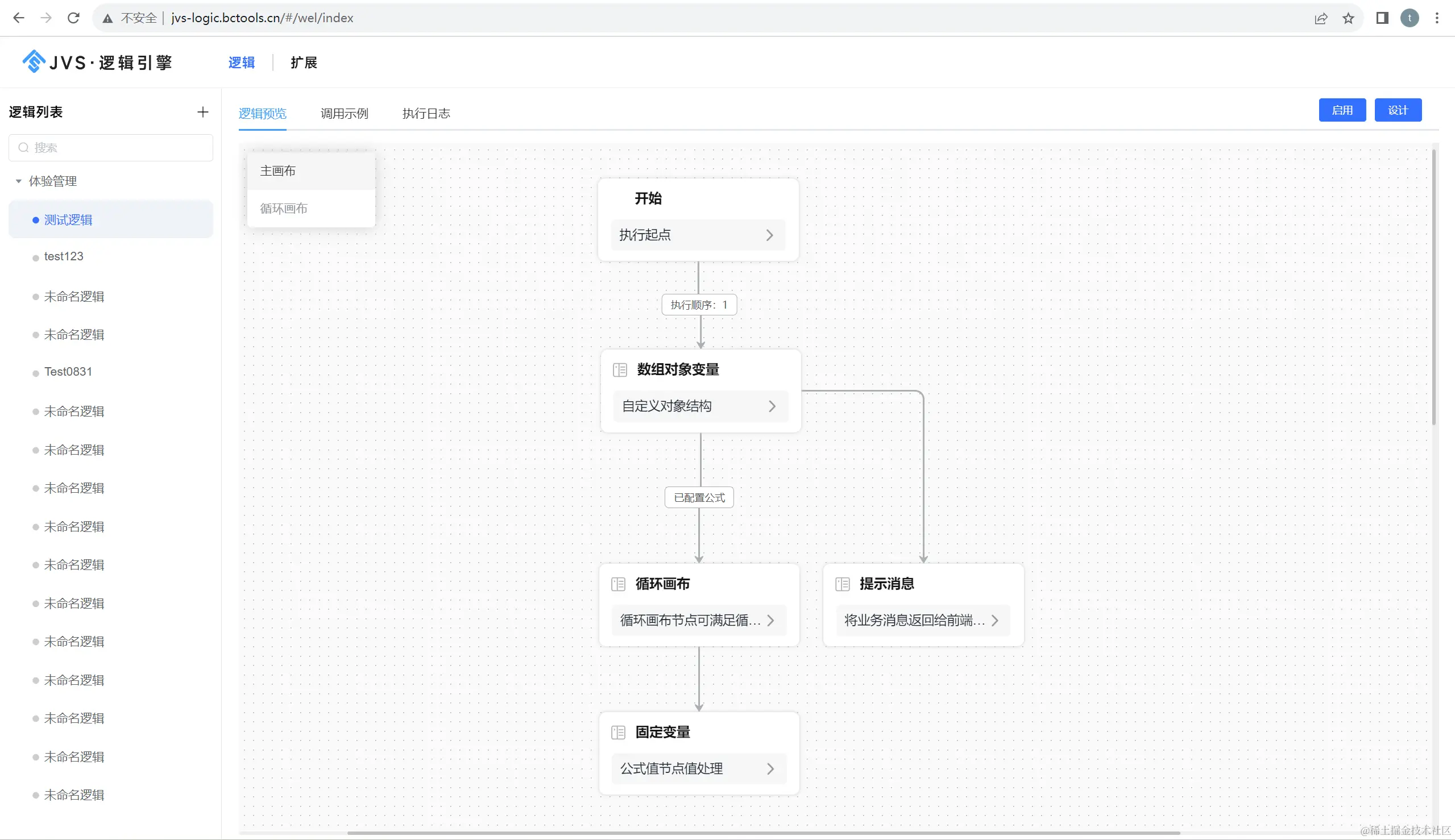 JVS-LOGIC提供了逻辑流程控制功能,允许事务控制与流程控制。这个功能可以满足不同业务场景下的需求,包括分支、循环、条件判断等控制方式。