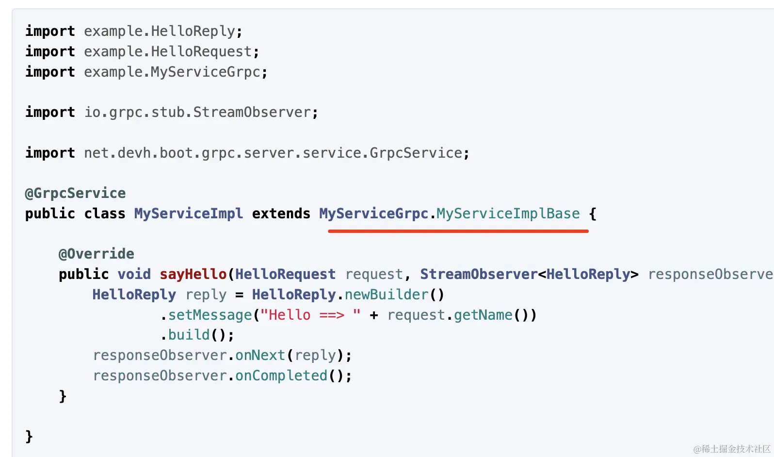 这就是基于 grpc 的远程方法调用,用 java、python、go、c++ 等实现的微服务也是这样来通信。