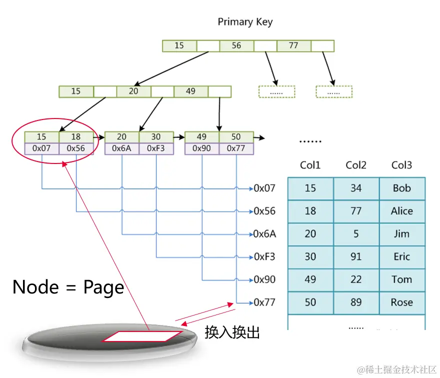 B+树优点: 利用局部性原理,加载1个node,正好是一个Page,只需读1次I/O,B+树更加的矮胖,减少了I/O次数,所以效率非常高。