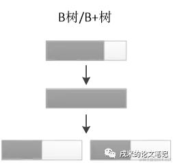B树/B+树:节点满时,一分为二。最低空间利用率1/2