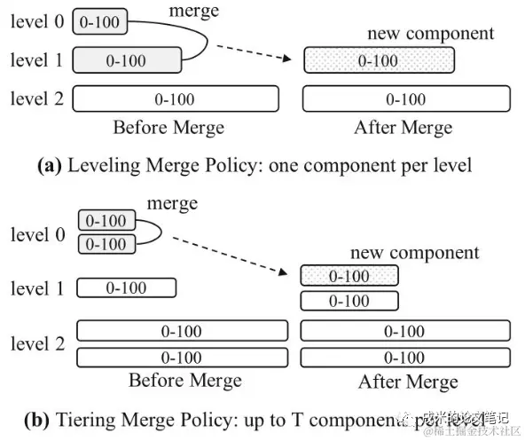 LevelDB、RocksDB采用的是Leveling策略;Cassadra采用的是Tiering策略;HBase没有做严格的分层,但也更接近Tiering策略。