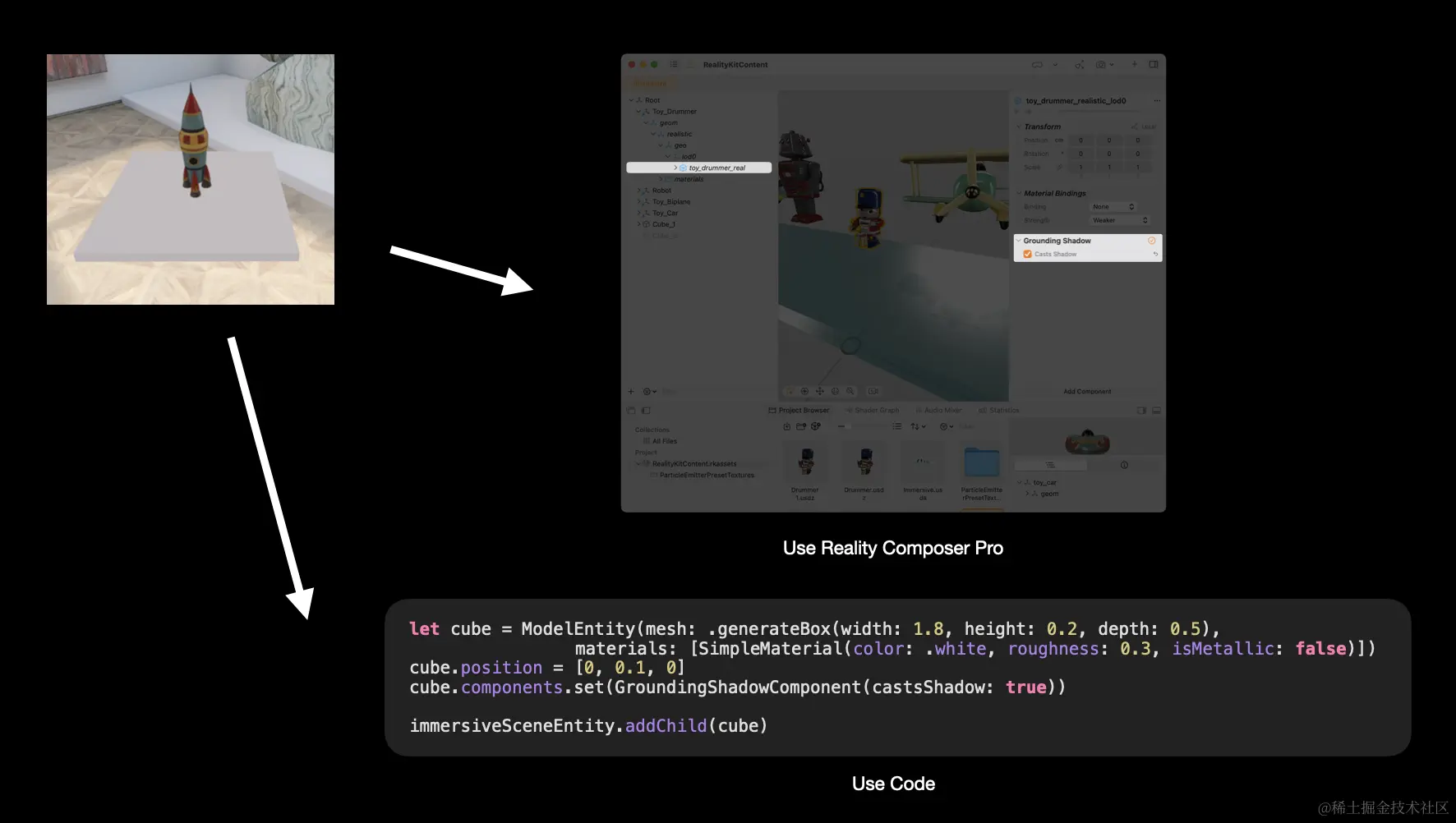 关键词:visionOS、ShadowComponent、Composer Pro、ModelEntity