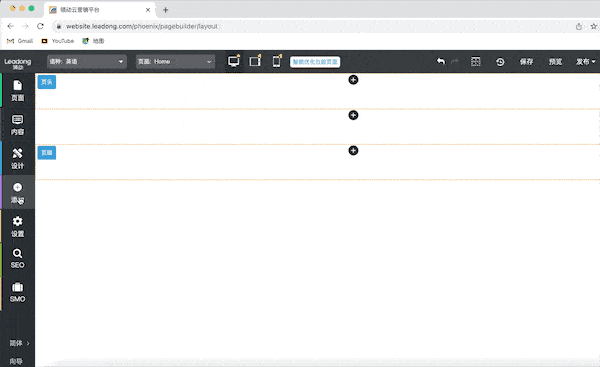 九凌网络云平台在网站设计中,提供了区块+组件的搭建模式,只需要用鼠标简单地拖拉拽,即可搭建网站。