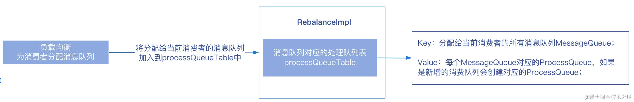 负载均衡是通过消费者启动时创建的MQClientInstance实例实现的(doRebalance方法),它的处理逻辑如下: