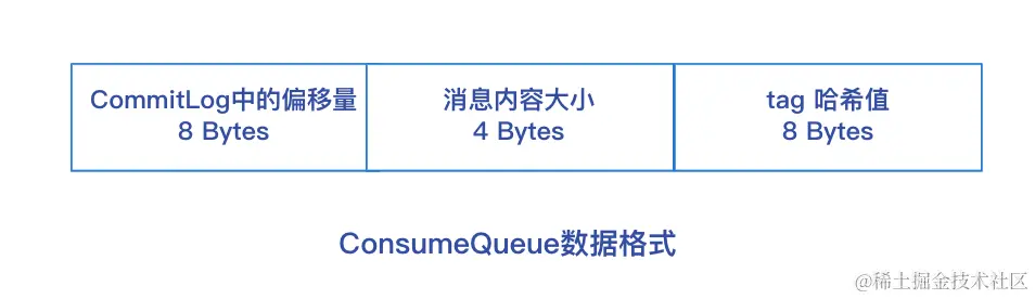 ConsumeQueue中存储的每条数据大小是固定的,总共20个字节: